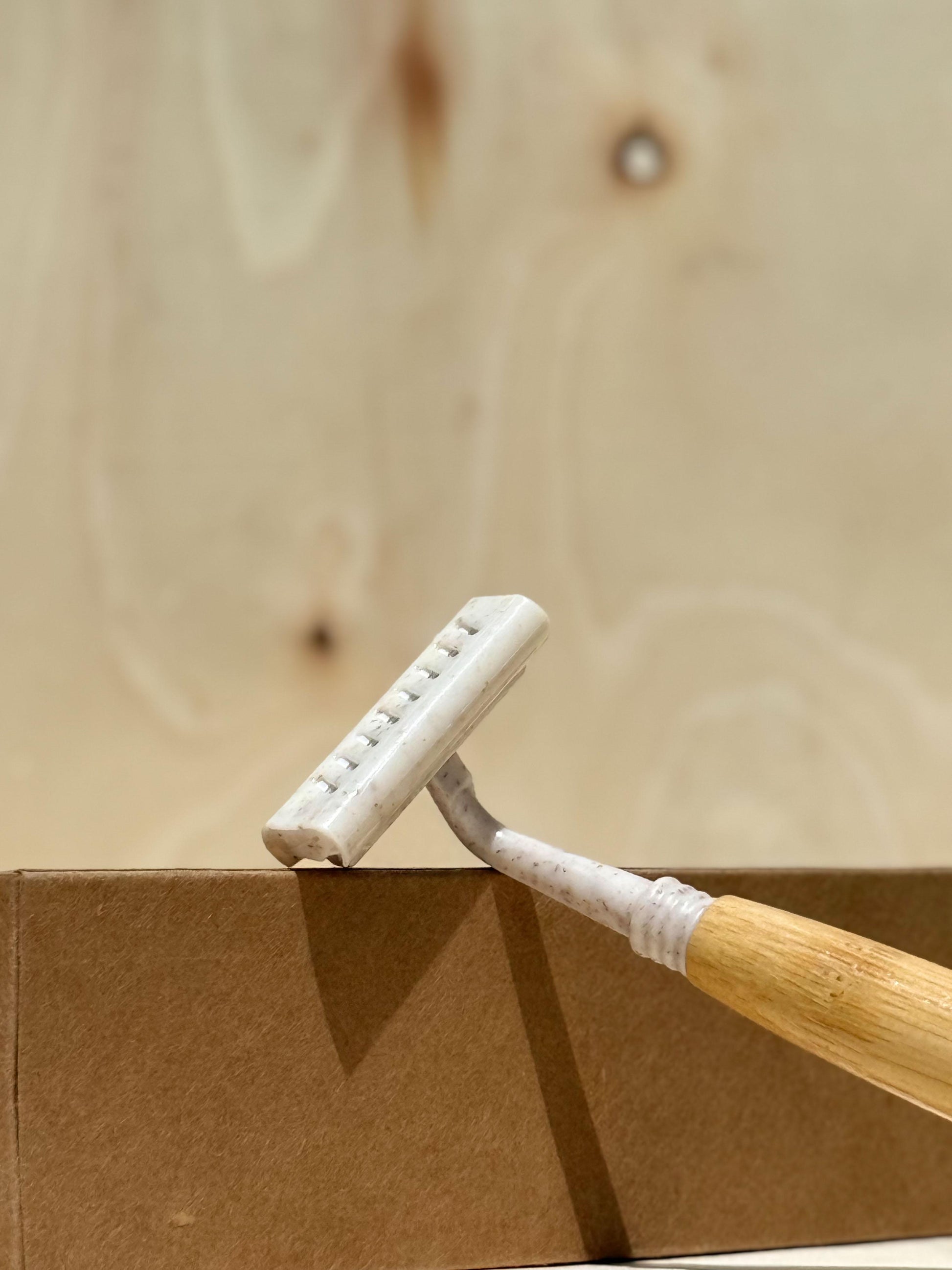 Diseñada para quienes buscan una alternativa sostenible y elegante al plástico desechable. Esta cuchilla cuenta con un mango de bambú natural, cómodo y ergonómico, combinado con una cabeza intercambiable que te permite alargar su vida útil y reducir el desperdicio.